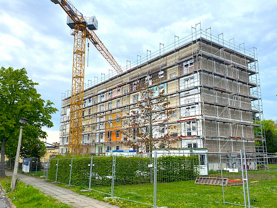 Der imposante Kran vor dem Haus ist seit April 2025 nicht zu übersehen: In der Straße des Friedens 22–24 beginnt etwas Neues – etwas, das uns sehr am Herzen liegt. Nach intensiver Planung haben wir mit der Sanierung dieses besonderen Wohnhauses begonnen. Es ist ein Herzensprojekt, das modernen Wohnkomfort mit Lebensqualität verbinden soll.