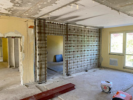 Um die Betriebskosten so gering wie möglich zu halten, lag unser besonderes Augenmerk auch bei diesem Projekt auf einer hochwertigen energetischen Sanierung. Dies bedeutete unter anderem auch die Dämmung der Fassade mit einem Wärmedämm-Verbund-System und den Einbau von isolierten Fenstern. Insgesamt entstanden hier 12 Zwei-Raum-Wohnungen, 12 Drei-Raum-Wohnungen und 6 Vier-Raum-Wohnungen - alle mit Balkon. Die Stellplätze befinden sich unmittelbar am Haus.